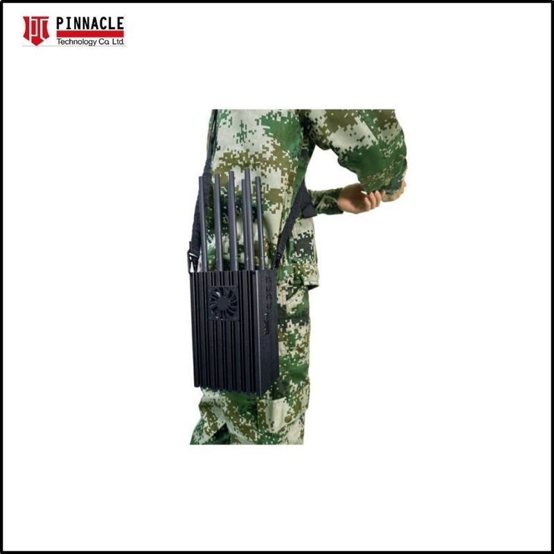 Αυτό το υψηλής ισχύος 80W με 8 κεραίες φορητό RF σήμα jammer γιααποκλεισμός του σήματος των μη επανδρωμένων αεροσκαφών, συμπεριλαμβανομένου του σήματος εντοπισμού GPS, των ασύρματων σημάτων WIFI και των προαιρετικών σημάτων παρεμβολής VHF/UHF.