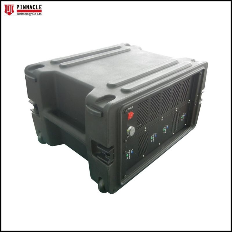 ΣύστημαΧαρακτηριστικάκαι Πλεονεκτήματα: Εγώ...Τεχνολογία ανίχνευσης και παρεμβολής τεχνητής νοημοσύνηςΓια να έχουμε τη μέγιστη αποτελεσματικότητα παρεμβολής. Ι Ιδιαίτερα σχεδιασμένο με 2 πλήρως φορητές θήκες στρατιωτικού επιπέδου για κάλυψη 20-6000mhz. Είναι εύκολο να κινείται σε ανώμαλους δρόμους, αντοχή σε κρούσματα και πτώσεις. Πλήρως αδιάβροχο σχέδιο διαθέσιμο για ορισμένα βροχερά κλίματα. να εξασφαλίσει υψηλές ανθεκτικές στις βροχές δυνατότητες. Ι Μονωδική κατασκευή για εύκολη αφαίρεση και σύνδεση, συντήρηση, επισκευή και αναβάθμιση. Ι ευαίσθητος σχεδιασμός εξαερισμού και θερμολύπτης που είναι ενσωματωμένοι στην θήκη για να εξασφαλιστεί η αδιάλειπτη εργασία. Η κάθε θήκη περιέχει έως έξι διαφορετικές ενότητες αναστολής ταυτόχρονα και καλύπτει διαφορετικές ζώνες συχνοτήτων. Κάθε ενότητα αναστολής μπορεί να επαναπρογραμματιστεί για να έχει έξι συχνότητες καναλιών, όπως απαιτείται. Η οθόνη δείχνει τη συχνότητα λειτουργίας, την ισχύ, το VSWR, την ισχύ, την τάση και τη θερμοκρασία. Είναι ευκολότερο να διαγνώσουμε προβλήματα στον υπολογιστή. Η κάθε μονάδα με την κεραία της μπορεί να χρησιμοποιηθεί ως πλήρης μονάδα. Κάθε μονάδα μπορεί να ελεγχθεί ξεχωριστά. Ο χειριστής μπορεί να ενεργοποιήσει / να απενεργοποιήσει κάθε μονάδα μέσω του καλωδιακό τηλεχειριστήριο και να εμφανίσει το επίπεδο της μπαταρίας. Ι Ενσωματωμένη μία ώρα Εσωτερική επαναφορτιζόμενη μπαταρία με προαιρετικό δείκτη της μπαταρίας. Περισσότερες μπαταρίες για επιλογή. Η συσκευή έχει μια οθόνη LCD στον πίνακα ελέγχου του εξοπλισμού για να δείχνει το επίπεδο της μπαταρίας. Ι Σχεδιασμένο με εξωτερική πύλη εισόδου μπαταρίας εφεδρικής χρήσης, προσαρμοσμένο για εξωτερική μπαταρία. Ο χρόνος χρήσης στο πεδίο και, ως εκ τούτου, η παράταση της διάρκειας ωρών του εξοπλισμού. Το...ΣυγκλονιστήςΤο σύστημα αυτό μπορεί να είναι φορητό και να τοποθετηθεί σε ένα όχημα, γεγονός που αποτελεί το μεγαλύτερο πλεονέκτημα του συστήματος. οι μονάδες μπορούν να συνδυάζονται ολόκληρες ζώνες συχνοτήτων εγκατεστημένες στο όχημα, εξοπλισμένες με κεραίες τοποθέτησης στο όχημα, απαιτείται. l Υποστηρίζει τηλεχειριστήριο με σύρμα και επίσης τηλεχειριστήριο υπολογιστή
